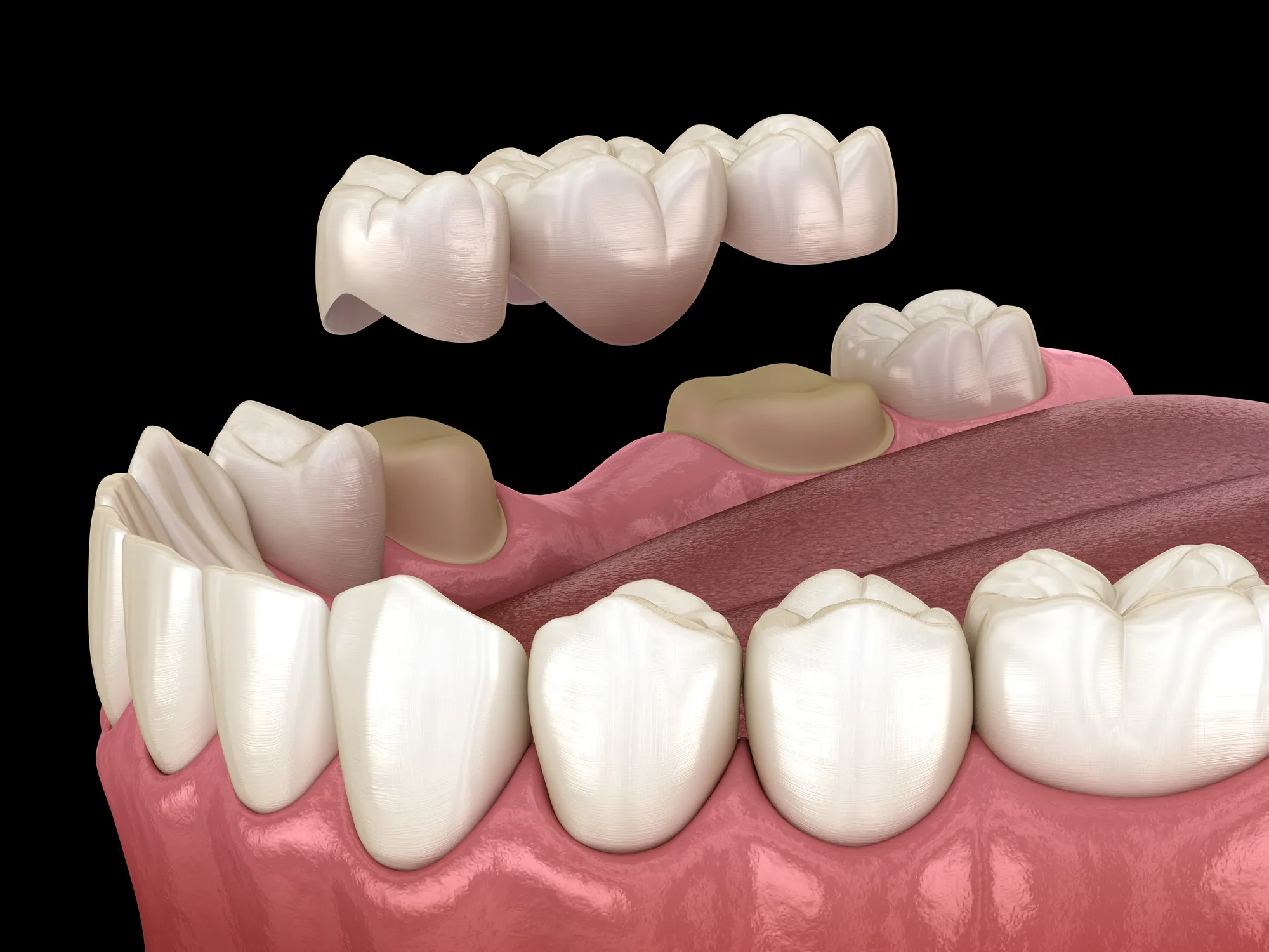 The bridge is fixed in your mouth and cannot be removed, so you don’t have to worry about your teeth coming out when eating or talking.