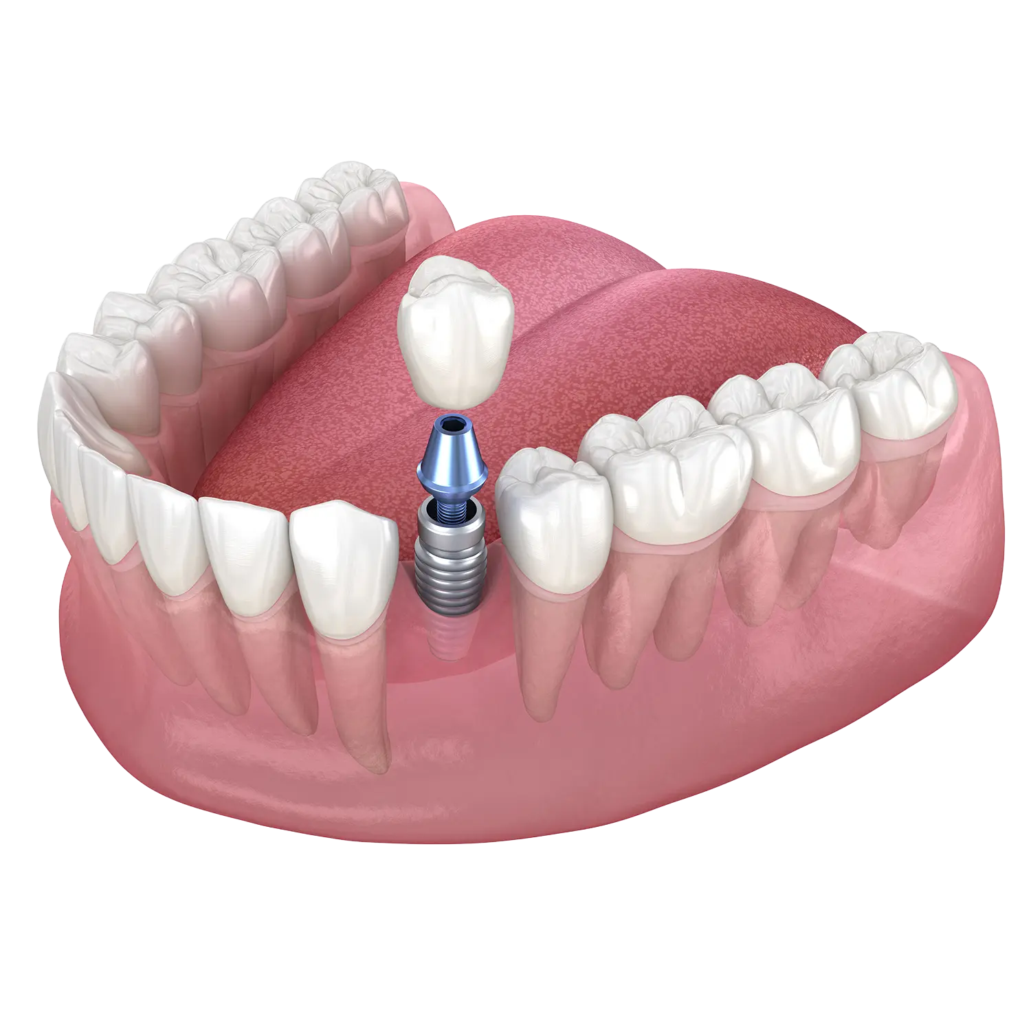 - Implant – A titanium or ceramic screw that serves as a root for your new tooth.