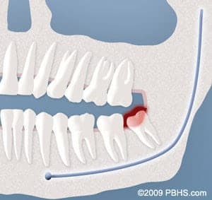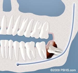 The most frequent clinical problem we see is pericoronitis, (a localized gum infection). Without enough room for total eruption, the gum tissue around the wisdom tooth can become irritated and infected, resulting in recurrent pain, swelling, and problems with chewing and/or swallowing.